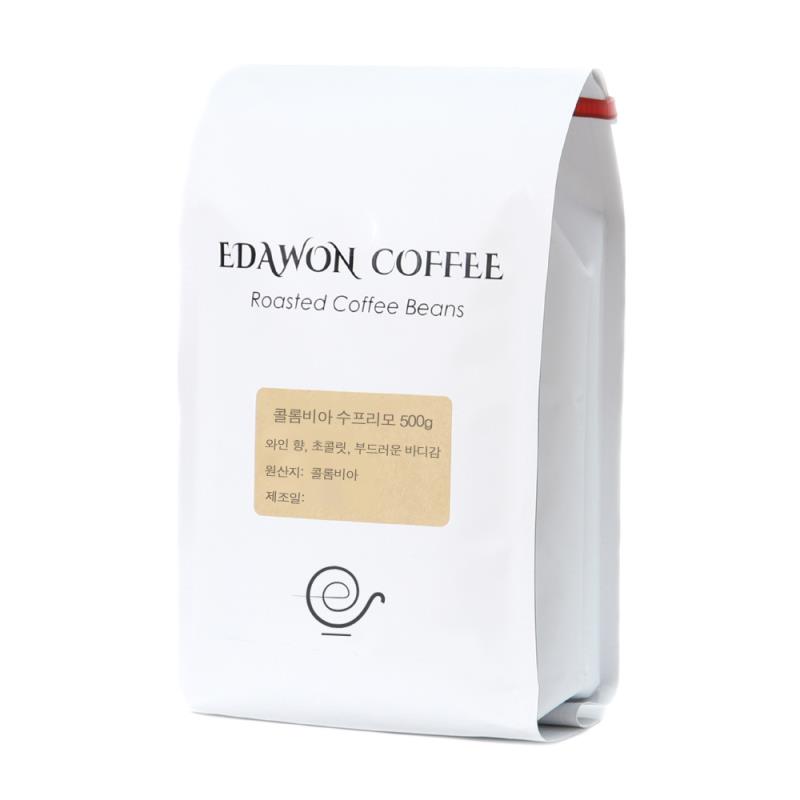 콜롬비아 수프리모 커피 원두 500g / 이다원 콜롬비아 커피는 마일드 커피의 대명사로 수프리모 커피로 유명합니다. 콜롬비아 생두는 청록색을 띠며, 생두의 크기에 따라 4개(수프리모, 엑셀소, UGQ, 카라콜리) 등급으로 분류하고 있습니다. 일반적으로 커피가 생산된 지역명을 커피 이름으로 사용하지만 최상급 커피에는 생산지역과 관계없이 최고 등급인 수프리모라는 이름을 붙입니다.