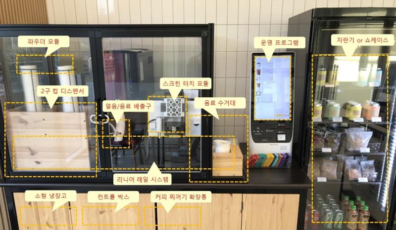 로봇 쇼가 아닌 실재로 사람들에게 음료를 서비스 하고 상품을 판매하면서 수익을 창출하고 있는 보고 듣고 생각하는 AI 바리스타 로봇입니다. 이다원과 함께 아르바이트 비용 걱정 없고, 일하고 싶은 만큼만 일할 수 있는 새로운 형태의 카페 비즈니스를 시작해 보세요. <바리스타 로봇 도입시 장점> 1) 카페를 운영할 때 인건비 부담을 줄일 수 있고, 휴일 야간 등 영업시간을 자유롭게 늘릴 수 있습니다. 2) 집 혹은 회사에서 편리하게 카페 수준의 음료를 항상 즐길 수 있습니다. (하루 10분, 일주일에 한번 30분 정도 청소 및 재고 보충 시간 필요함) 3) 사람들이 다니는 길목에 작은 공간만 있으면 어디서든 카페 영업을 시작해서 수익을 올릴 수 있습니다. <이다원 바리스타 로봇만의 장점> 1) 유명 프렌차이즈 카페 혹은 호텔 등에서 사용하는 전세계 최고 수준의 자동 커피머신의 기능들을 그대로 활용해서 에스프레소를 추출하고, 냉장 보관된 생우유를 스티밍 후 라떼 음료를 제조하기 때문에 음료의 품질이 뛰어납니다. 2) 고가의 로봇팔과 그립퍼 대신 자체 제작한 리니어 레일 시스템을 사용하고, 바리스타 로봇 관련 하드웨어 및 소프트웨어 핵심 기술들을 자체적으로 보유하고 있기 때문에, 판매 가격이 낮으며 유지보수가 간단합니다. 3) 음료 뿐만 아니라 다양한 디저트 상품 판매를 위한 자판기 연동 서비스를 부가적으로 제공합니다. 4) AI 기반 시각, 음성 인식 및 대화 기능이 탑재되어 있습니다. <제조가능 음료 종류> 1) 아메리카노 핫/아이스 3) 카페라떼 핫/아이스 5) 각종 파우더 기반 음료 (믹스커피, 핫초코, 복숭아 아이스티 등) 6) 뜨거운 물, 얼음 컵 <로봇 부품 구성> 1) 테이블 & 유리부스 (테이블 & 유리부스 설계도 참조) 2) 리니어 레일 시스템 (좌우 컵 운반) 3) 2구 컵 디스펜서 (상하 컵 분배) 4) 음료 수거대 (수위 체크, 컵 수거 확인, 내부로 이상 물체 투입 감시) 5) 스크린 터치 모듈 (필요시 제공, 커피머신 연동용, 1500S+는 불필요) 6) 컨트롤 박스 7) 자판기 연동 모듈 (필요시 제공, 자판기 종류에 따라서 연동이 불가하거나 별도 비용이 청구될 수 있음) 8) 키오스크 결제 및 운영 프로그램 (온라인 관리자 페이지 및 자동 업데이트 지원) 9) 이다원 커피원두 1kg, 파우더 3종 (할인 구매 계정 별도 제공) *위 상품들에 대해서는 이다원에서 AS 진행합니다. <연동 기계 구성> 1) WMF 커피머신 1100S Basic (1500S+로 변경시 추가 비용 1,150만원) 2) 3구 파우더 커피 머신 3) 아이스반 디스펜서형 제빙기 NID-1520T3 4) 밸류텍 20리터 냉장고 5) KCP 18인치 키오스크 6) 80W 이상의 2채널 스피커 *자판기 혹은 쇼케이스 불포함 *위 머신들에 대해서는 각 브랜드사에서 AS 진행하고 이다원에서는 AS에 관여하지 않습니다. *차후 AS 상황을 대비해서 직접 구매도 가능합니다. 이 경우, 전체 금액에서 직접 구매 비용만큼 차감해 드립니다. <부가 기능> 1) 자판기 혹은 쇼케이스를 활용한 무인 상품 판매 ('이다원 AI로봇 > MY 로봇' 관리 페이지에서 상품 등록, 주스/에이드/탄산음료/빵/과자/커피원두 등 판매 가능) 2) 블루투스 스피커 음악 플레이, 원격 제어 3) 자유로운 이동 (테이블 하단 바퀴 장착, 모듈화된 부품) 4) AI 기반 시각, 음성 인식 및 대화 기능 (이다원 원두 구매시 월 5시간 기본 사용량 무료, 그 이상 사용 시 기능 제한 혹은 클라우드 비용이 부과될 수 있음) <상세 스펙> 1) 크기 및 무게: 가로 180cm X 세로 90cm X 높이 175cm, 150kg 내외 (자판기 혹은 쇼케이스 크기 제외) 2) 원두 호퍼 용량: 아메리카노용 원두 500g, 라떼용 원두 500g (1kg으로 확장 가능) 3) 냉장 우유 저장 용량: 생우유 5리터 (10리터로 확장 가능, WMF 자동 우유 라인 세척 시스템 완벽 호환) 4) 파우더 보관통 용량: 1.5kg 보관통 3개 5) 종이컵 저장 용량: 100개 (핫, 아이스컵 분리 사용 가능) 6) 음료 제조 속도: 시간당 30잔 내외 7) 전력 소비량: 4.4kw (20A, 커피머신/제빙기/냉장고 포함 총 합) 8) 상하수 연결: 3/8인치 정수라인, 내경 38mm 배수관 직접 연결 9) 인터넷 연결: 유선 혹은 무선 연결 모두 가능 10) 소프트웨어 환경: Windows 10 IOT <안전 관련 사항> 1) 이다원 바리스타 로봇은 기본적으로 24V, 80w 이하 구동부를 가지고 있어서 별도의 안전 장치 없이도 사람에게 위험을 초래하지 않습니다. 2) 그럼에도, 로봇 구동부는 튼튼한 격벽으로 둘러싸여 있어서 더더욱 안전합니다. 3) 또한, 구동 중에 사람이 로봇 속으로 팔을 집어넣는 등의 행동을 할 경우, 추가적인 안전경보 시스템도 갖춰져 있습니다. <수익쉐어 프로그램 안내> 1) 바리스타 로봇은 도입하고 싶은데, 초기 비용이 부담스러운 경우 수익쉐어 프로그램에 참여하실 수 있습니다. 자세한 내용은 수익쉐어 프로그램 안내 페이지를 참고해 주세요. *운영 프로그램 다운로드: 다운로드 시작 (Windows 10 이상 환경 지원, 자동 업데이트 지원) *온라인 관리 페이지: 이다원 AI로봇 > MY로봇 (관리 계정은 주문시 담당자 메일로 제공) *오프라인 전시장: 이다원 시음 카페 *관련 페이지 및 상세 설명: 이다원 바리스타 로봇 *부품 구입: 바로가기 *무상 유지보수 기한: 2년 (바리스타 로봇 한정, 연동 기계 제외) *납기: 결제완료 후 3개월 이내 *주문 제작 상