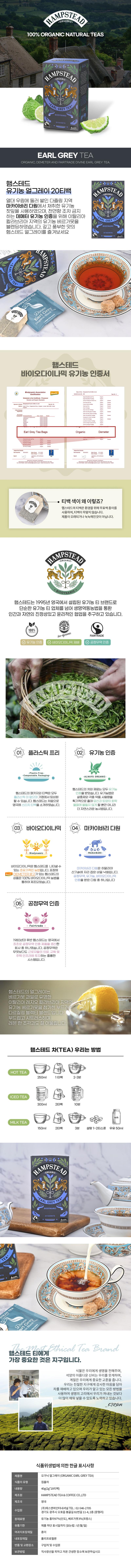 유기농 얼그레이 20티백 / 햄스테드 / 11,900원